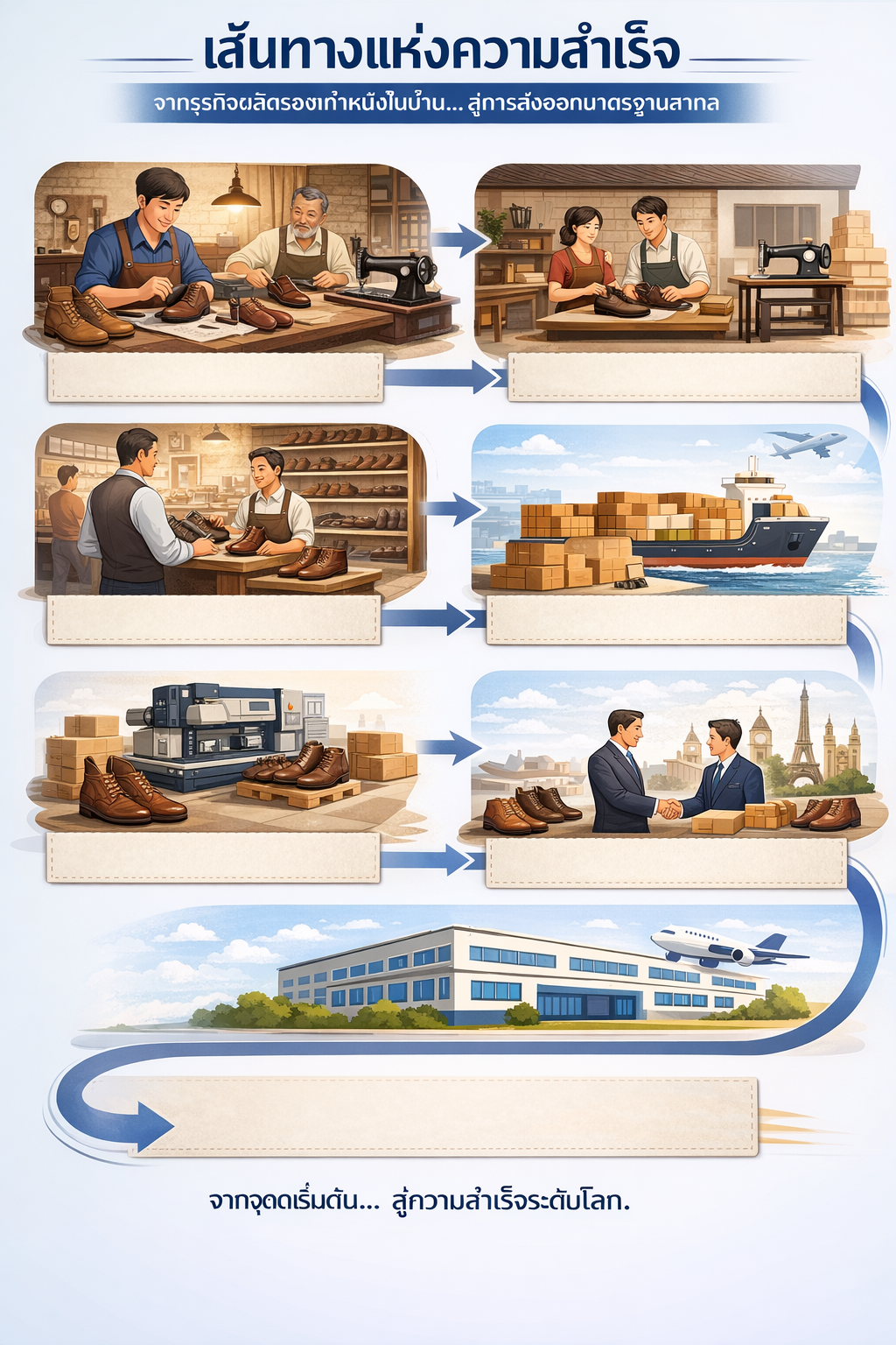 พ.ศ. 2534 | จุดเปลี่ยนครั้งสำคัญสู่ตลาดโลก: ขยายฐานการผลิตเข้าสู่รูปแบบการรับจ้างผลิต (OEM) เพื่อการส่งออก และตัดสินใจปรับเปลี่ยนกลยุทธ์การดำเนินงาน โดยมุ่งเน้นการผลิตรองเท้าหนังคุณภาพสูงเพื่อส่งออกไปยังตลาดต่างประเทศอย่างเต็มตัว